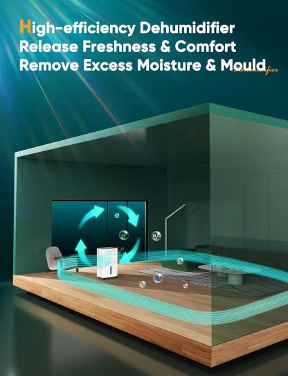 - SMART AND PORTABLE - Easily move your home dehumidifiers from room to room with 360 degree swivel wheels and hidden side handles. The bedroom dehumidifier is equipped with a high efficiency air circulation of 108 m³/H and dehumidification to dry the indoor air and make it comfortable throughout the wet season, it is the ideal companion for your home
