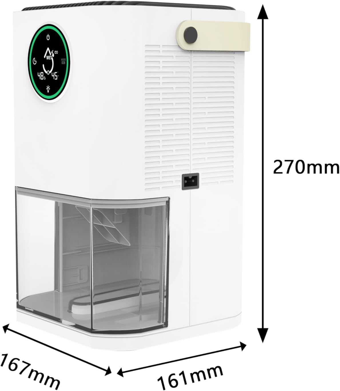 - POWERFUL MOISTURIZATION REMOVAL - Our 2000ml dehumidifier powered by advanced Dual Peltier technology, extracts 750ml/day at 30℃ and 80% RH, perfect for bedroom, laundry room, office, bathroom, caravan and RV. With a rated power of 64W, our mini dehumidifier is energy efficient, saving electricity and the greener environment. KEEP YOUR SPACE DRY AND HEALTHY - Shop yours today! Note: The plug of our dehumidifier may feel hot during use, which is completely normal. Works safely up to 80-85°C (176-185°F) If the temperature exceeds this limit, the unit will automatically shut down to ensure safety.