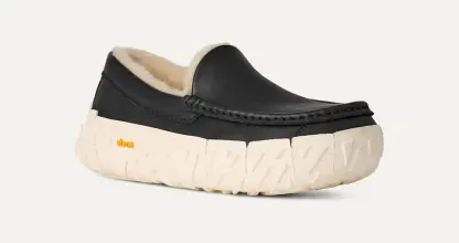 Our Ascot Wrap Tech Noir is where comfort and capability collide. This loafer takes our Ascot Slipper into more areas of your life with a Vibram® Wrap Tech outsole that provides superior, out-of-bounds traction and pure, bold fashion, and a genuine leather upper for a more refined look and feel. Inside, you'll find our signature UGGplush™ lining and a molded footbed that hugs your foot like an old friend. Head into new fashion territory filled with comfort and style with our Ascot Wrap Tech Noir.