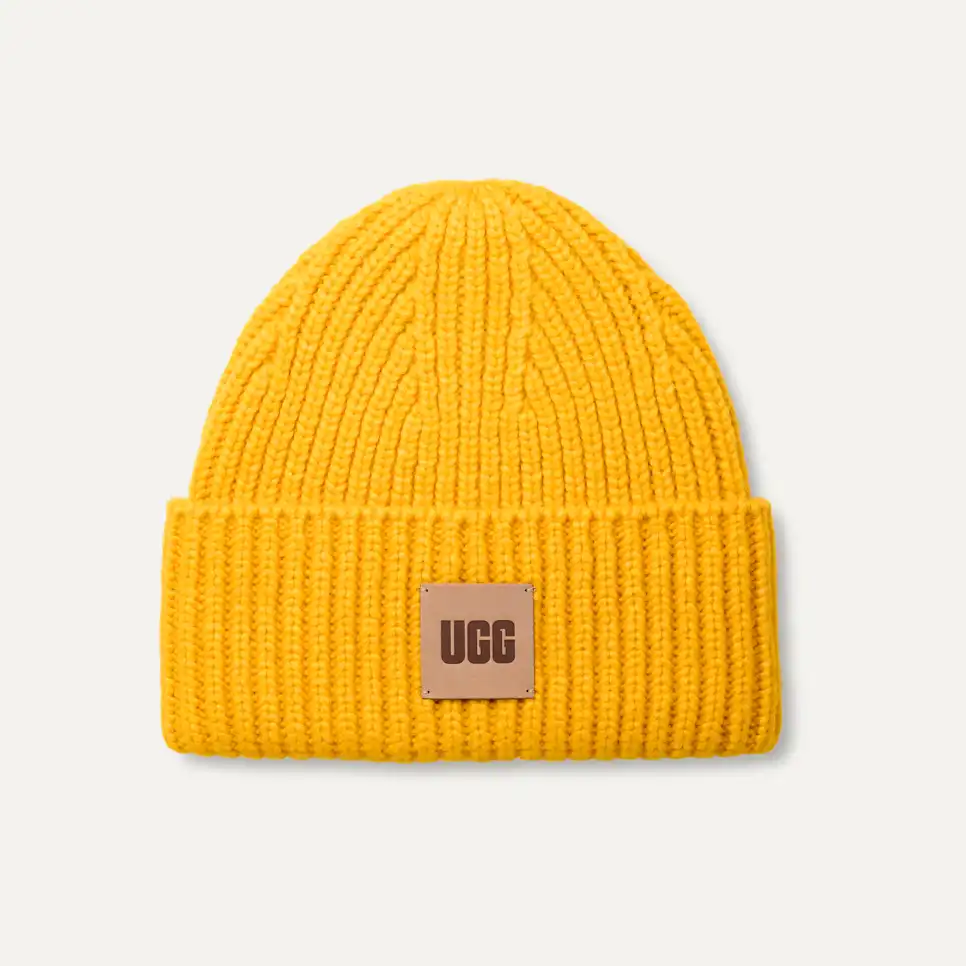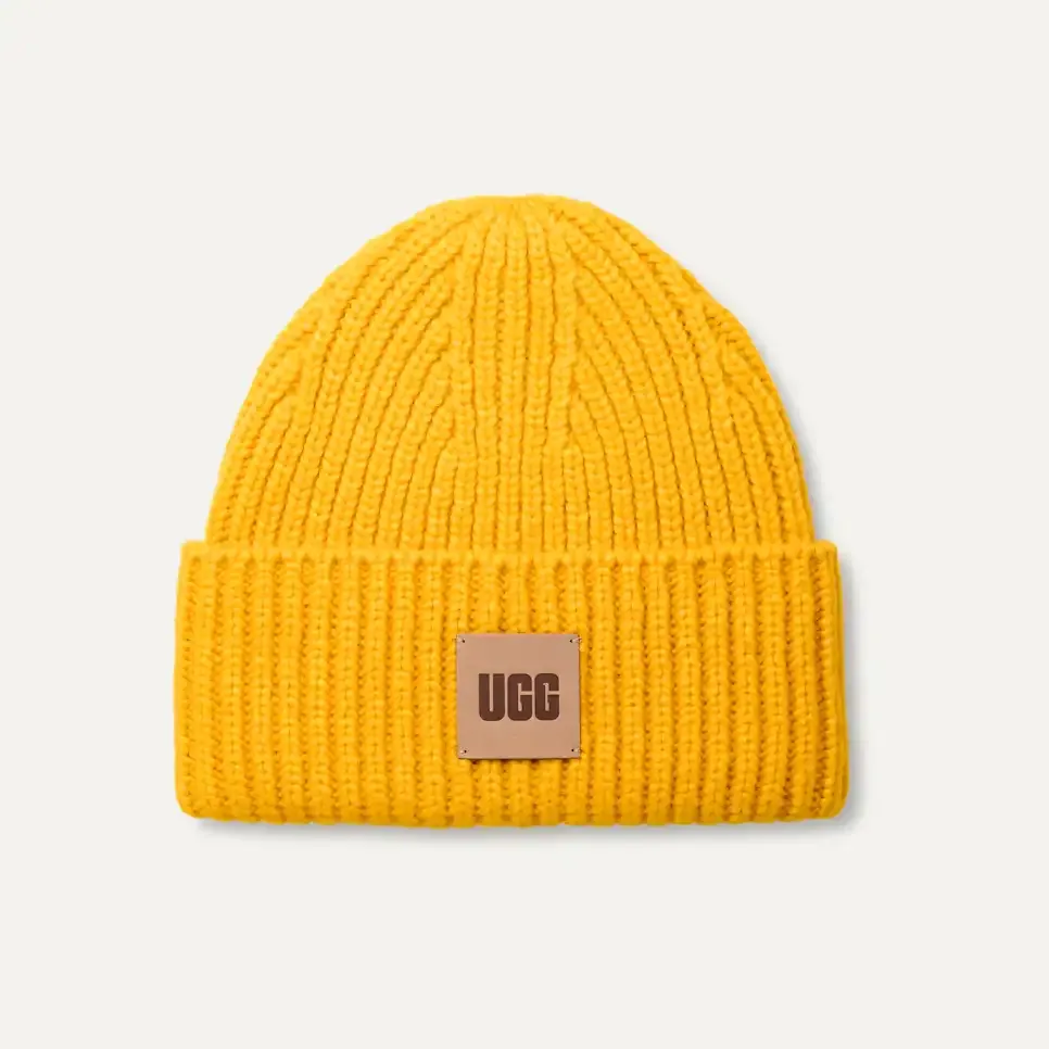 Made from a cozy wool blend, this best-selling beanie features a chunky rib-knit fabric and woven The UGG® Logo patch that you'll want to wear all season long.