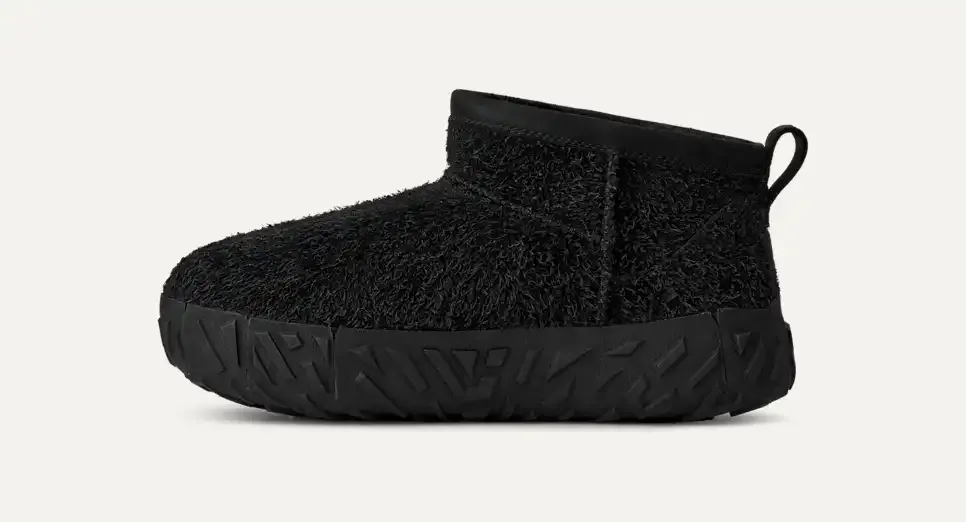 Our Classic Ultra Mini Wrap Tech takes one of our modern Classics into a new era. With the same shorter shaft and Twin Seam details you love in the Classic Ultra Mini, this iteration features a shaggy suede upper and a wrapped Vibram? outsole with a raw-edged finish. Equally bold and comfortable, this boot surrounds you in our signature curly UGGplush? lining and insole and offers all-day support with the lightweight sugarcane EVA midsole.