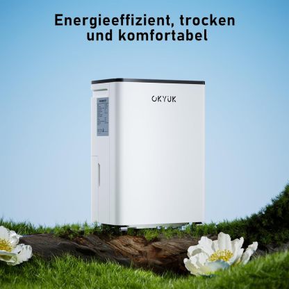 OKYUK Deumidificatore 12 litri/giorno, adatto per ambienti di circa 90 metri cubi (30 metri quadrati), Deumidificatore casa muffa, sbrinamento automatico, 32 dB, refrigerante R290, PD12R-03DE