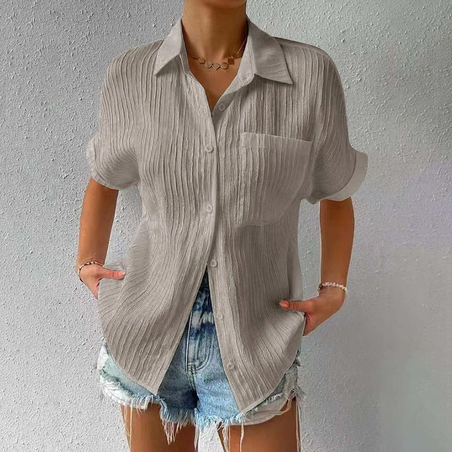 Shirt Collar Casual Buttoned Loose Blouse